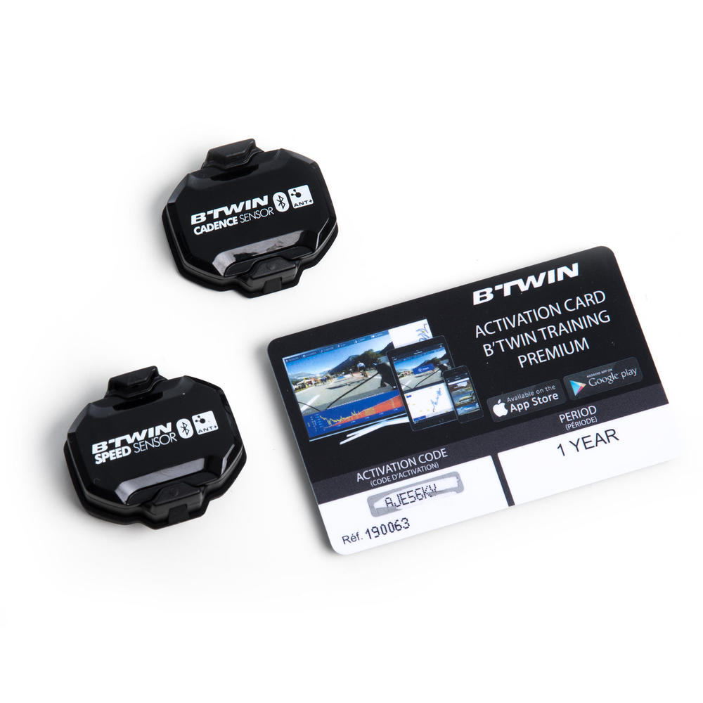 Set met 2 sensoren (snelheid/trapfrequentie) met Bluetooth Smart en ANT+, om je B'TWIN-fietstrainer te verbinden met je tablet of smartphone.